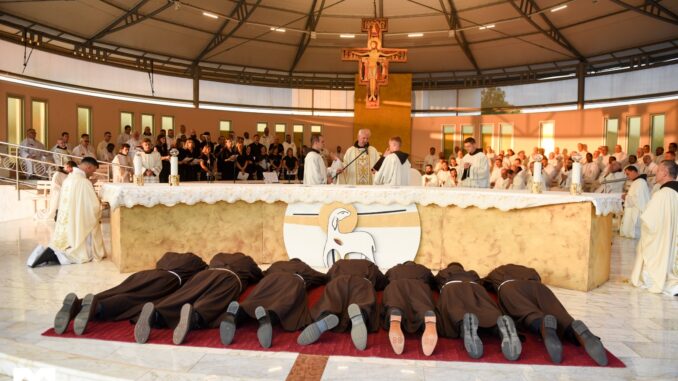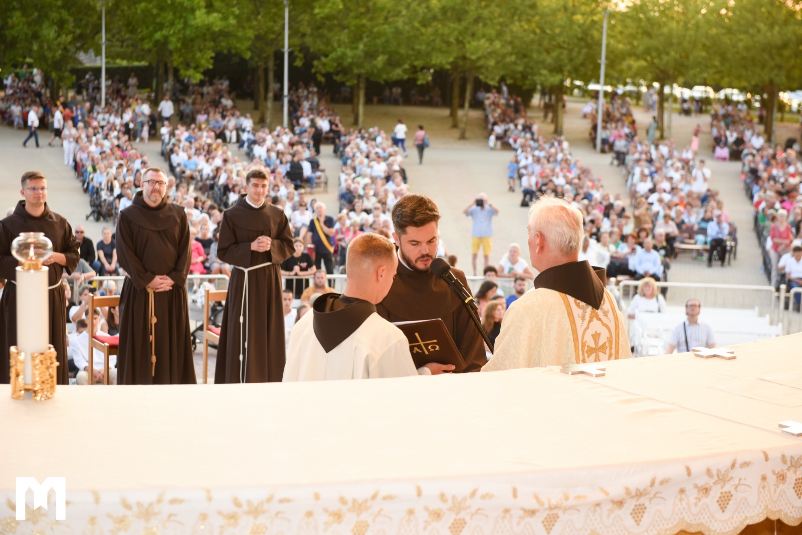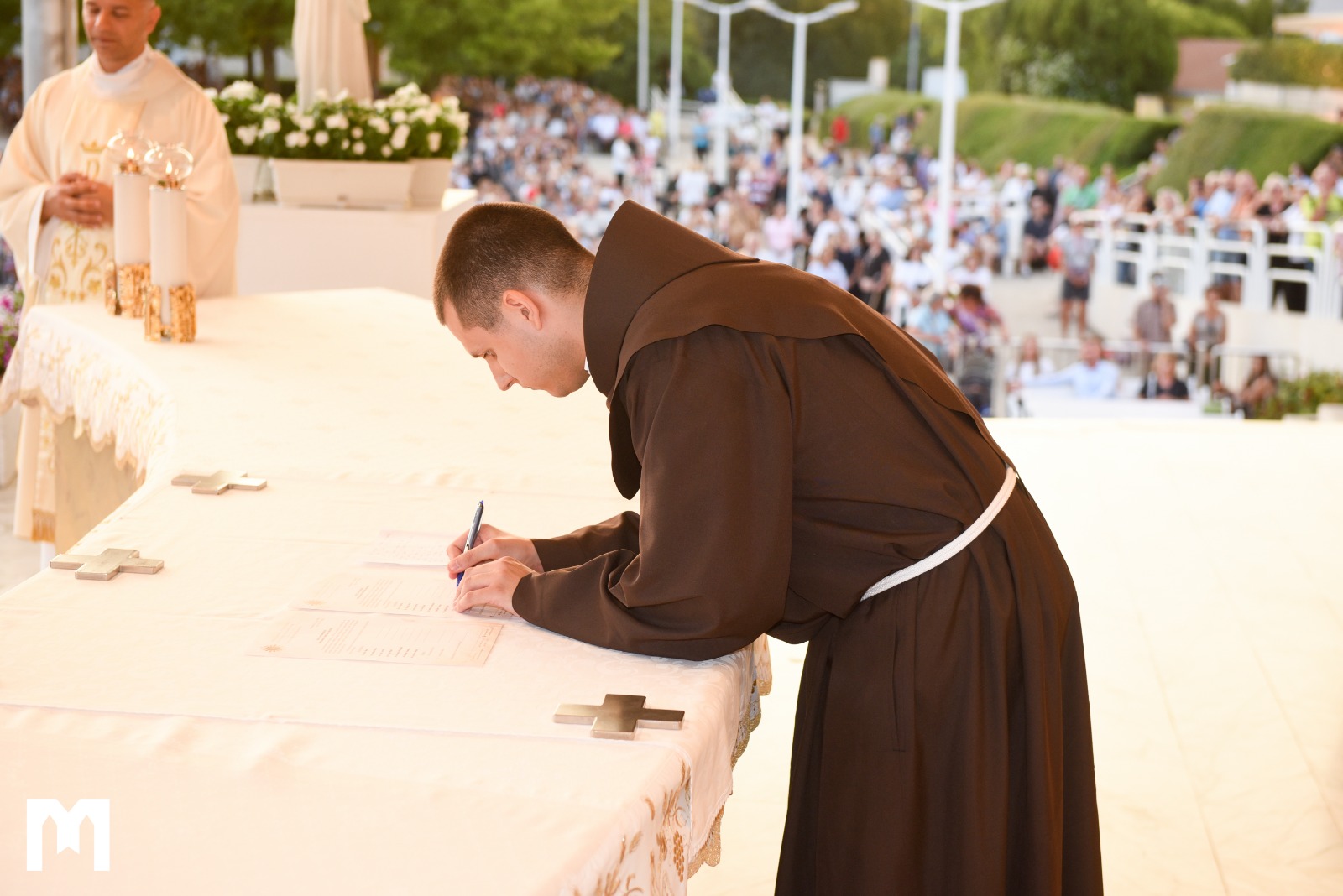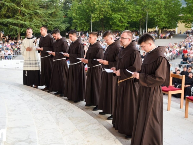 Članovi Hercegovačke franjevačke provincije Uznesenja Blažene Djevice Marije fra Alen Barać (Župa Uznesenja BDM – Široki Brijeg), fra Franjo Brbor (Župa sv. Ante – Humac), fra Ivan Lovrić (Župa sv. Ane – Zagreb), fra Filip Miloš (Župa sv. Katarine – Grude), fra Antonio Ramljak (Župa Bezgrešnog začeća BDM – Posušje), fra Marko Vukadin (Župa Uznesenja BDM – Seonica) i fra Lucijan Zeljko (Župa Uznesenja BDM – Široki Brijeg) zatražili su ”da zavjetujući Pravilo i život u Redu manje braće mogu slijediti nauk i stope Gospodina našega Isusa Krista sveto djelujući do smrti”, a obred svečanog zavjetovanja, kao i svetu misu, na vanjskom oltaru crkve sv. Jakova u Međugorju u subotu 6. rujna predvodio je provincijal fra Jozo Grbeš, koji je u ime Crkve i Bratstva primio zavjete sedmorice braće te im od strane svemogućega Boga, budu li to opsluživali, obećao vječni život.