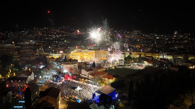 Upravo je gradonačelnik Kordić s centralne pozornice, uz novogodišnju zdravicu, svima poželio mirnu, zdravu, uspješnu i radosnu novu 2025.