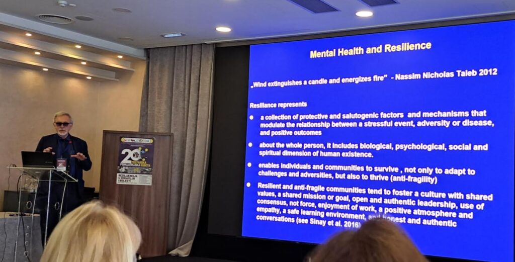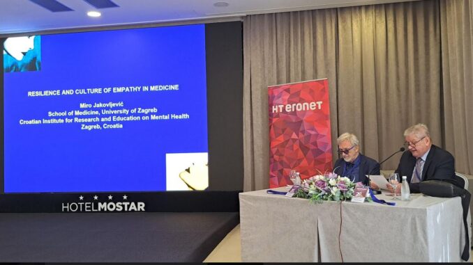 Jedan od njih je Miro Jakovljević, profesor emeritus i prvi predstojnik Katedre za psihijatriju Medicinskog fakulteta Sveučilišta u Mostaru. ”Na našem životnom putovanju susrećemo se s različitim izazovima, ako ih uspješno savladamo onda idemo putevima zdravlja, a ako ne, onda ulazimo u krizna stanja i patogeneze u različite bolesti. Rezilijencija je naša sposobnost da na pravi način odgovorimo na stresove. Stres je izazov u životu i ako ne uspijemo pronaći pravi način kako odgovoriti na njega, to može odvesti u krizu i krizno stanje, koje nekada zna prijeći u bolest. Jako važno je prepoznati činjenicu da se zdravlje gradi, da je povezano i sa zdravim stilom životom”, kazao je Jakovljević. Rezilijencija podrazumijeva čovjekovu sposobnost kad se nađe u nekim stresnim situacijama, ne samo da ostane stabilan, nego da bude još jači, raste psihološki, socijalno i duhovno.