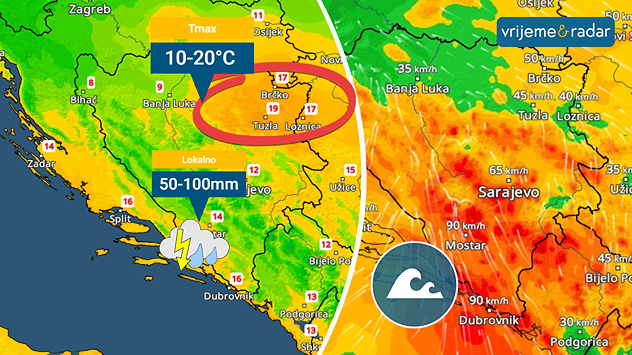 Shodno prognozi vremena, nedjelja je donijela vjetrovito vrijeme u dosta mjesta, obilne kiše, a na istoku Bosne temperature se popela do 20°C.