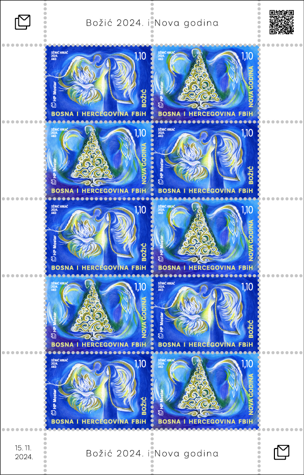 Hrvatska pošta (HP) Mostar prigodnim poštanskim markama tradicionalno obilježava Božić i Novu godinu. Marke su tiskane u arku 10, prvi dan izdanja je 15. 11. 2024. godine.