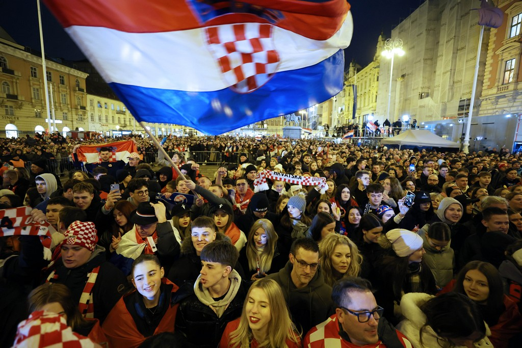 Središnji zagrebački trg punio se navijačima još u ranim popodnevnim satima, uz mnoštvo hrvatskih zastava, a ozračje na trgu zagrijavali su Zaprešić Boysi i Hrvatske ruže.